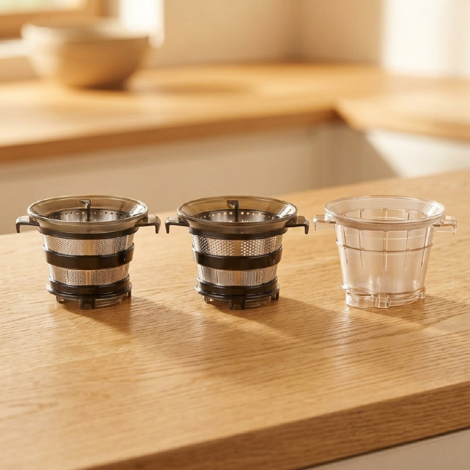 Use the Fine Strainer for clearer texture, the Coarse Strainer for mix of juice and pulp, and the Ice cream Strainer for refreshing sorbet.